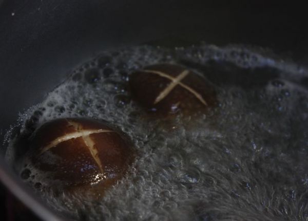 ④ 去除秋水仙碱:如果还有第二道工序就焯水10~15秒,如果焯水后打算凉拌就直接焯水致花朵完全煮软呈半透明色。