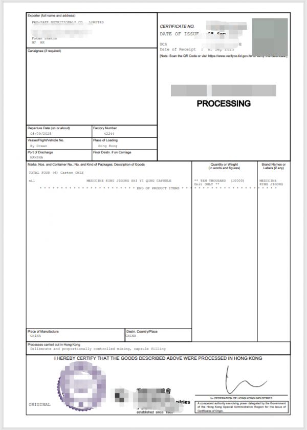 对于启运地与原产地均为香港的保健品,除工业贸易署出具的原产地证外,还需同步提供由原产国主管部门批准的生产资质证明文件,例如工厂营业执照等。这一调整源自香港《进出口条例》相关要求,旨在进一步规范货物产地来源认证。由于签发机构收窄,预计短期内产地证办理时效可能延长,建议相关企业提前规划。