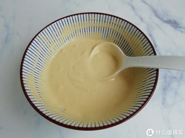 第四步:根据面糊的浓稠度少量多次的加入一些清水搅拌均匀,再加入玉米油搅拌均匀。