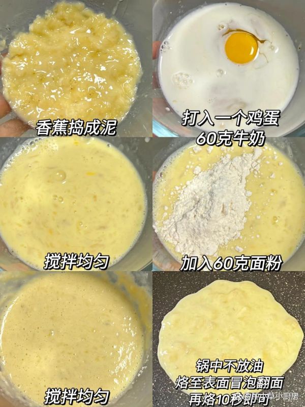 香蕉、鸡蛋、牛奶(60 克)、面粉(60 克)
