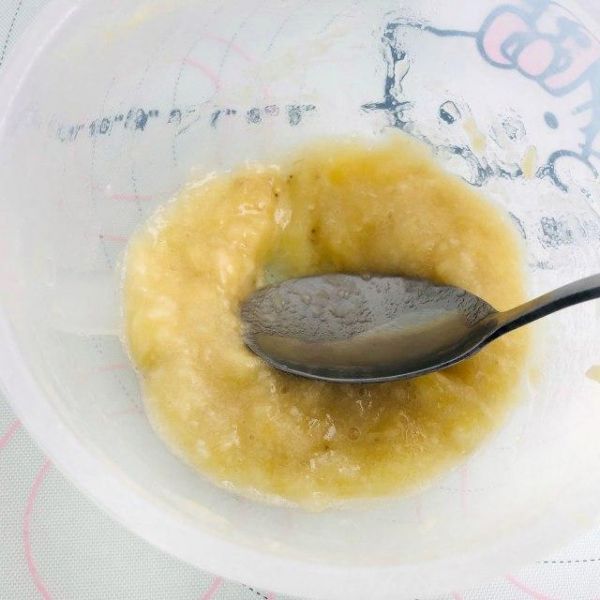 第2步、用一个小勺子把香蕉压成泥。这样操作是为了后面的混合更方便。