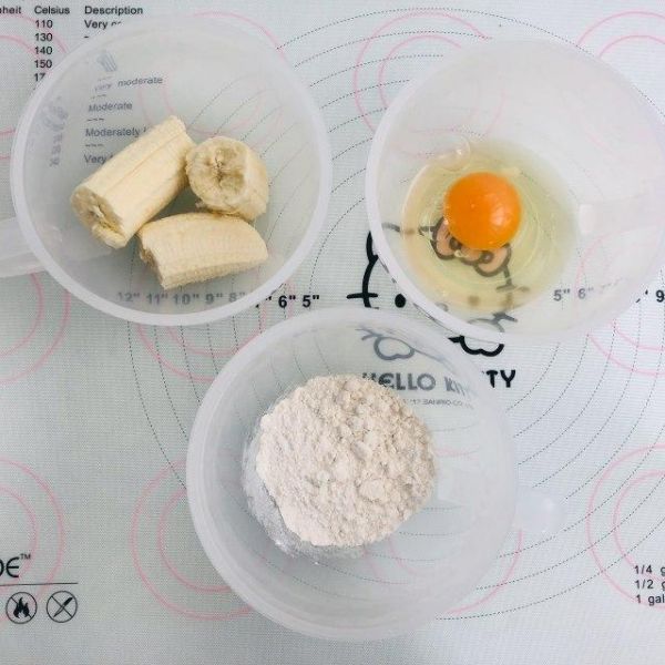 原料:香蕉、鸡蛋、低筋面粉。