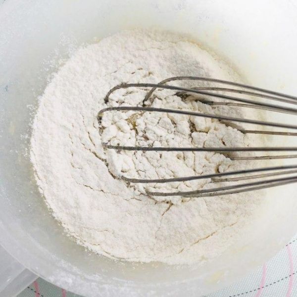 第4步、继续在碗里筛入面粉,用手动打蛋器稍微搅均匀就好了