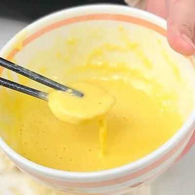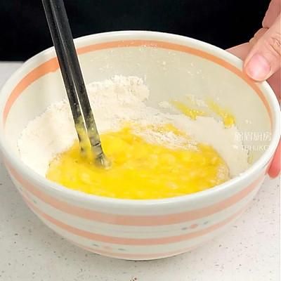 3、碗中打入2个鸡蛋、30克面粉,充分搅拌均匀(家里人多的可以做双份);