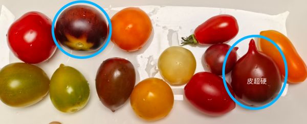 但有个小问题,就是口感垫底。在市场上买的棕色圣女果个头大,皮很厚且硬,尤其是有尖头的那个品种,吃起来需要很费劲地咀嚼。不过在电商平台买的棕色个头偏小,皮就比较薄一些。不过,无论皮厚还是薄,几乎都没有甜味儿,纯酸,试吃后统一反馈是口感垫底。