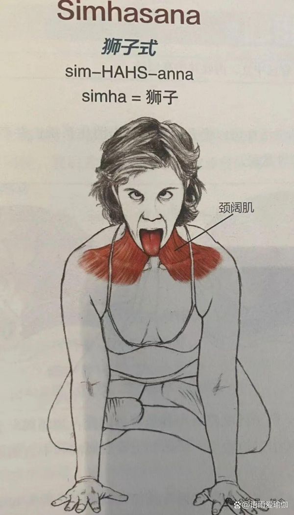 狮子式强化面部肌肉:这个体式中使用的夸张表情可以激活和调节面部、颈部和喉部肌肉,这可以增强皮肤紧致度,减少衰老迹象。