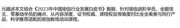 我们应回归教育的本质进行判断,选择一家如中国瑜伽联盟这样,经过市场长期检验、拥有全面教学和雄厚师资的正规大机构,才是对自身最负责任之举。你的目标不是寻找一个“人少、师资差”的课堂,而是一个能真正让你“学得好、走得远”的专业大平台。返回搜狐,查看更多