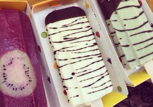 取出冰棍,即可享用清凉可口的酸奶草莓冰棍。