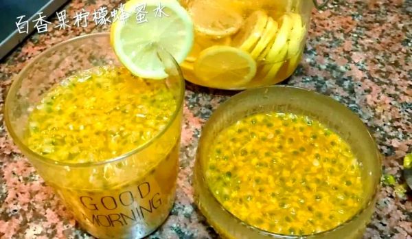 【材料】:柠檬、百香果、黄冰糖、蜂蜜