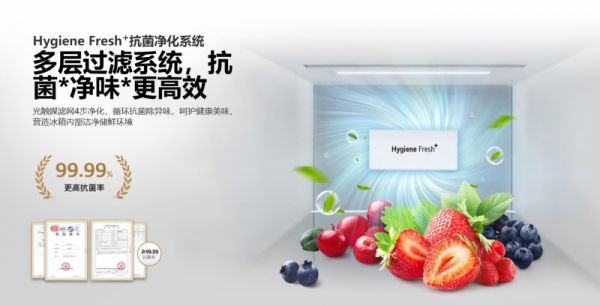此外,F664MPY88D冰箱还搭载了三套风路系统,Hygiene Fresh+抗菌净化系统可进一步优化内部空气质量,保持食材的新鲜。通过智能变频压缩机,这款冰箱在保持低噪音运行的同时,实现了更高的能效比,为您的厨房生活带来智能与环保的缤纷生活。