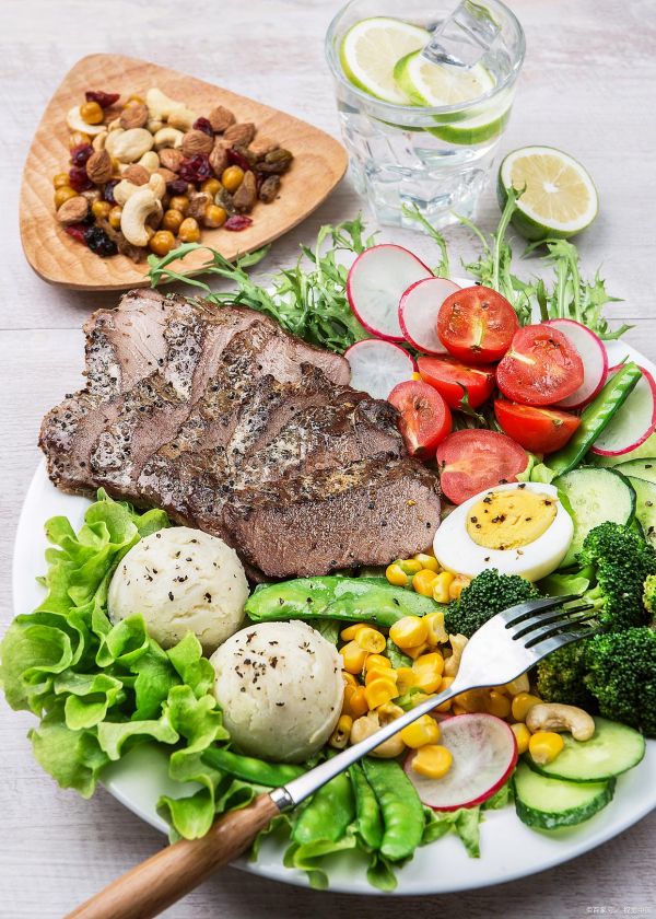 制作蔬菜沙拉。生菜洗净撕成小块,黄瓜切片,番茄切块,放入碗中。用橄榄油、醋、盐和黑胡椒调制沙拉汁,淋在蔬菜上搅拌均匀。将糙米饭、香煎牛排和蔬菜沙拉搭配在一起,就是一顿营养丰富、能量充足的减脂餐,既能满足肌肉增长对蛋白质的需求,又能通过蔬菜和糙米控制热量摄入。