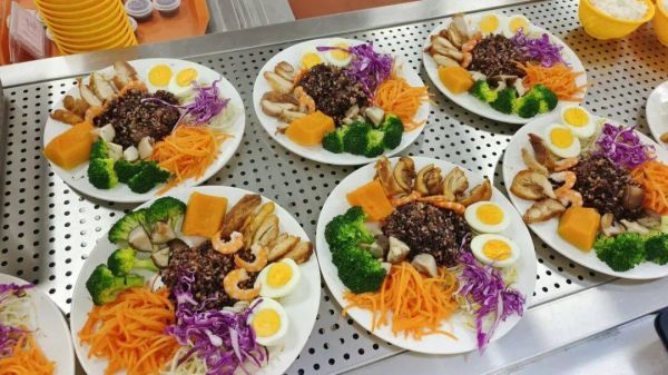 在运动方面,职工可参与公司组织的舞蹈、减重等多样化训练营;在饮食方面,食堂根据医院营养科专家团队的建议,动态调整健康餐的品类与搭配,确保营养均衡。同时,结合南方时令特点,食堂每月更新应季菜品,帮助大家更高效地达成健康目标,形成“运动+膳食”的双重健康管理闭环。