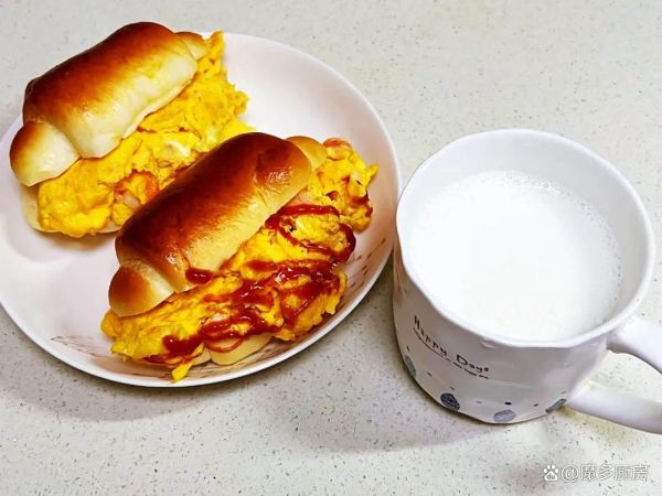 早餐三:牛奶、虾仁炒蛋三明治