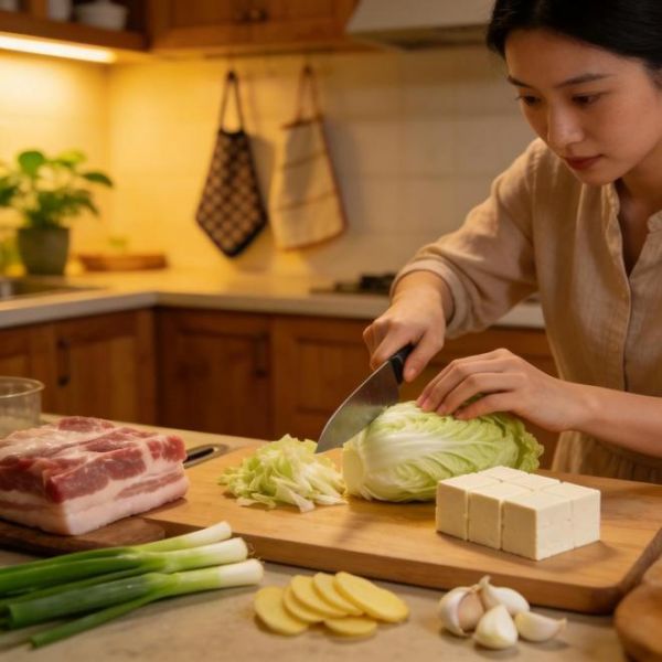 每次妈妈做这道菜,我都会在厨房门口等着。闻着锅里飘出来的香味,口水都快流出来了。等菜做好了,一家人围坐在一起,吃着热腾腾的白菜炖豆腐,感觉整个冬天都变得温暖了。