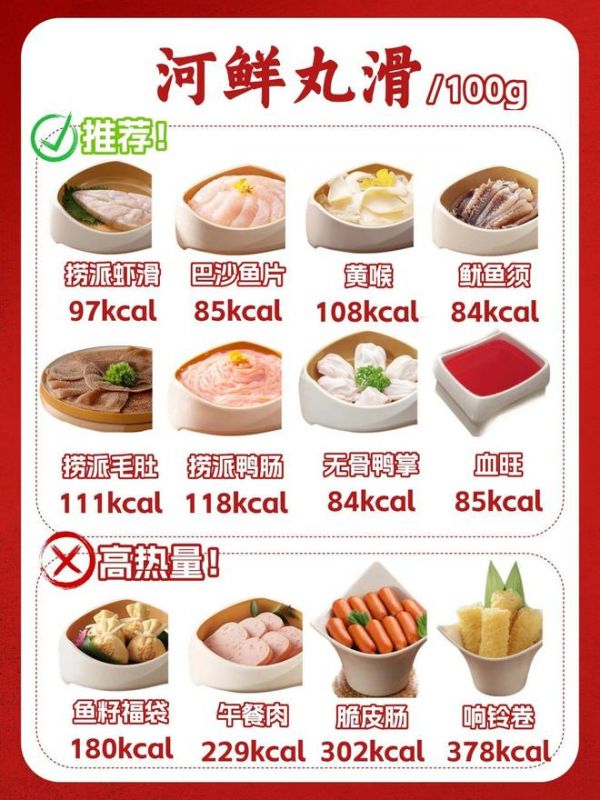 肉类篇:肥牛卷虽然香,但热量可不低哦。相比之下,低脂高蛋白的巴沙鱼和虾滑就是更好的选择,既能满足吃肉的快乐,又不用担心长太多肉肉。