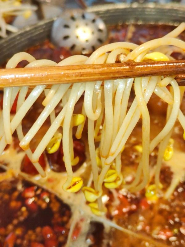 魔芋结吸汁大法:先把魔芋结在滚烫的红油锅里涮 10 秒,让每根魔芋都吸满汤汁,再捞出来蘸麻酱 ——Q 弹的口感配上浓郁的味道,根本停不下来。