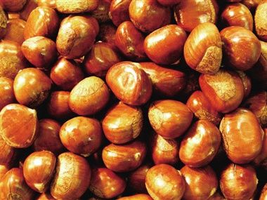 栗子素有“干果之王”的美称,其有补肾健脾、强身壮骨、益胃平肝的功效,可谓干果中的佼佼者。糖炒栗子是京津一带别具地方风味的著名汉族小吃,栗子中含有核黄素,经常食用对口舌生疮、口腔溃疡有益。板栗含有丰富的柔软的膳食纤维,多种维生素以及钙、钾、磷等矿物质,还具有预防便秘的功效。