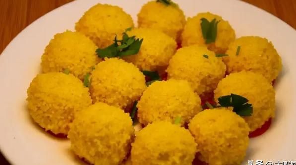 小米作为一种主食材质,富含蛋白质、碳水化合物、膳食纤维等多种营养物质,是人们日常饮食中的重要组成部分。冬天吃小米有助于提高身体的热量供应,增加体力。这道小米丸子是将小米泡发后与猪肉末、胡萝卜等食材混合在一起制成的。丸子状的小米外表金黄酥脆,内里鲜嫩多汁,口感鲜美。在烹饪过程中,我们可以加入一些调料,如姜蒜、酱油、料酒等,增加风味。
