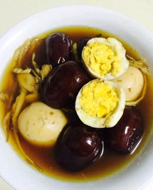 3. 放入剥好的鸡蛋、枸杞,继续煮10分钟,最后加红糖调味即可。