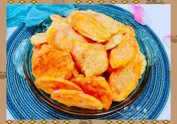 制作流程:首先,将面粉与适量清水混合,搅拌均匀至适中黏稠度的面粉糊。接着,将红薯去皮后洗净,切成均匀的薄片。然后,将红薯片逐个放入碗中,裹上一层厚厚的面糊。随后,将锅烧热,待油温达到五六成时,放入裹好面糊的红薯片,用中小火慢慢炸透,直至红薯片两面呈现金黄酥脆。最后,用漏网捞出炸好的红薯片,即可享用。需注意,炸好的红薯片应尽快食用,以免放久变软,影响口感,若需复炸可恢复其酥脆。