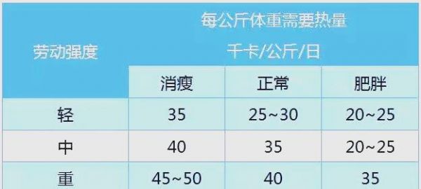 每日所需热量可以通过一个简单的公式来计算:每日热量需求 = 理想体重 × 每公斤体重所需热量。对于轻体力劳动的成年女性,每日推荐能量摄入量为1800kcal,而成年男性则为2250kcal。同时,理想体重可以通过身高减去105来估算。当然,如果你觉得这样计算太繁琐,也可以直接参考下面的表格来获取大致的每日热量需求。
