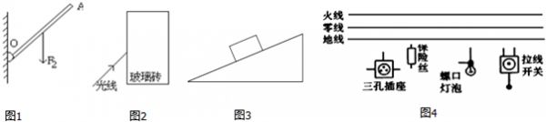 (1)在图1中画出使杠杆OA平衡时最小动力F1的示意图和阻力F2的力臂.