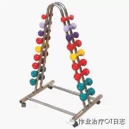 哑铃:最常见的训练器具,根据患者功能状况的不同,选择不同重量的哑铃进行训练