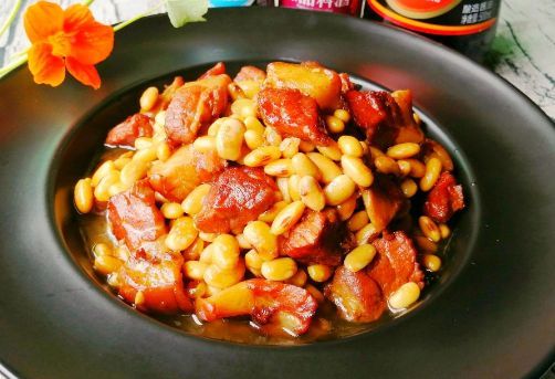 【吃货鉴赏】五花肉红烧特别美味,搭配黄豆更是味道好极了。黄豆含蛋白质多,五花肉也含有蛋白质,有助于补充蛋白质,提高记忆力和免疫力,适合老人和小孩食用。