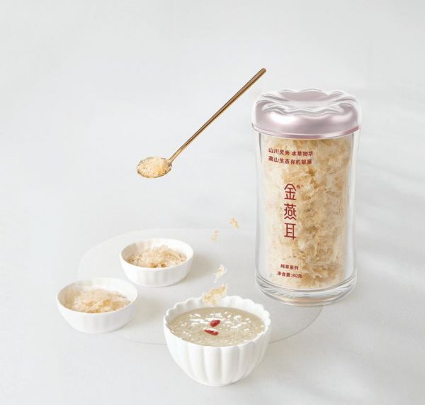 金燕耳银耳一改传统银耳动辄炖煮3小时的食用方式,改为焖20分钟或煮10分钟即可出胶食用。而这依托于他们品牌在福建古田自有的7万多平米产业园,与多项银耳制备技术专利,通过这些技术与设备以及前端农科院专家研发技术的支持才能够让银耳保持活性,并更快释放胶质,从而利于人体吸收。