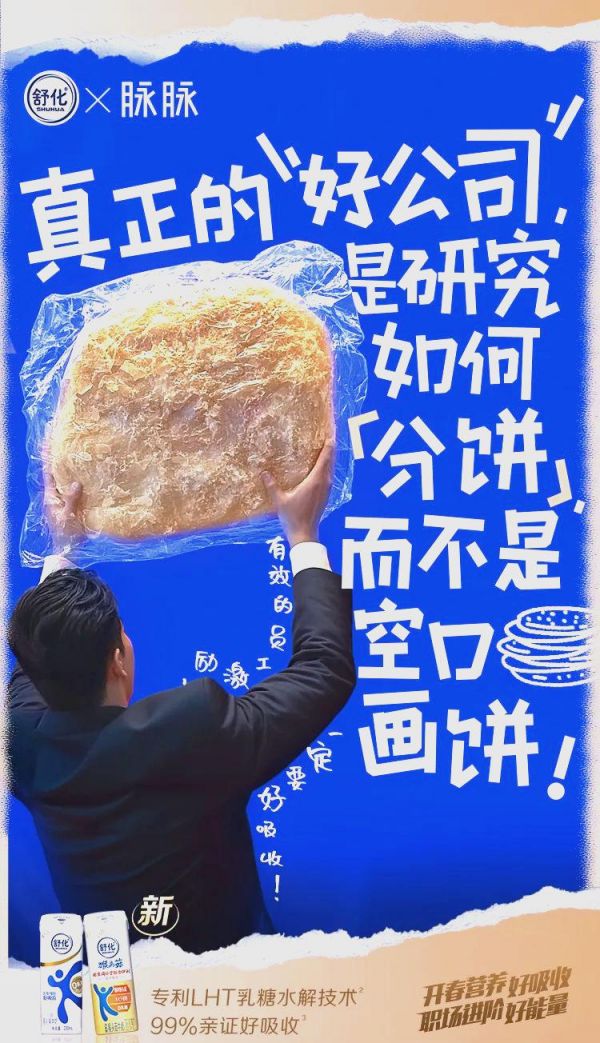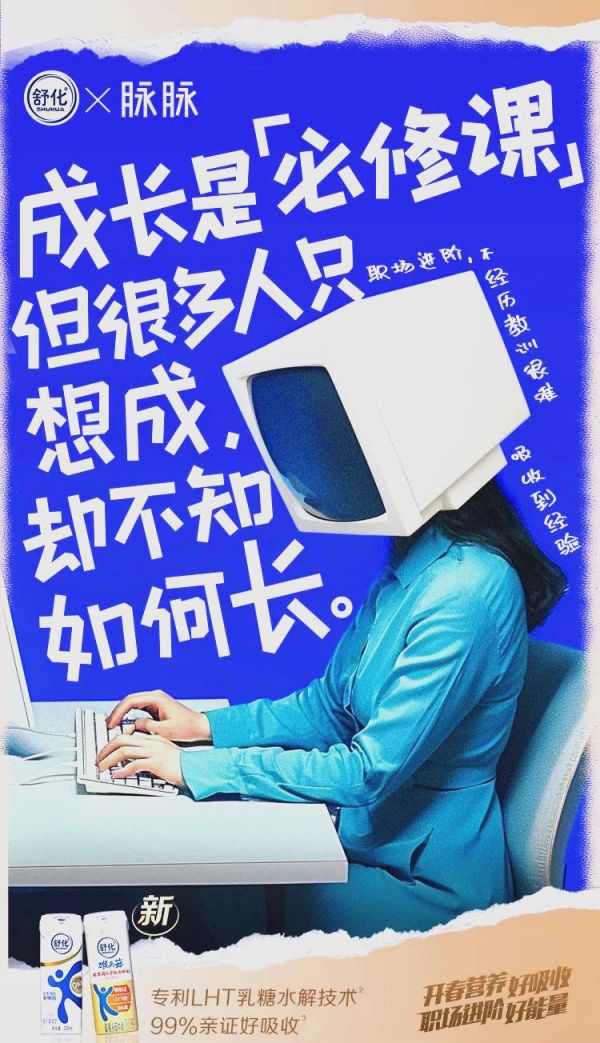 近期,一项职场自救方案引起了广泛关注,该方案由舒化与脉脉共同推出,专为吸收能力欠佳的职场人士量身定制。舒化与脉脉的职场自救方案,不仅为职场人士提供了实用的吸收能力提升方法,更在情感层面给予了他们深切的关怀。在这个快节奏、高压力的职场环境中,情绪价值显得愈发珍贵。因为金钱可以挣得,但能够提供情绪价值、带来心灵慰藉的人或事,却并不容易找到。舒化与脉脉通过幽默脱俗的文案,巧妙地将“吸收”这一职场必备技能与生存哲学相结合,为职场人注入了满满的正能量,让他们在面对挑战时能够更加从容不迫。这样的内容,无疑是我等职场人士的心灵鸡汤,看后让人深受触动,欲罢不能。