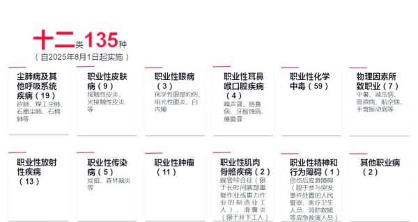 职业病,这一与劳动者健康紧密相关的话题,涵盖了多种因职业活动而引发的疾病。这些疾病往往源于不可避免地接触到粉尘、放射性物质及其他有毒有害因素,这些因素可能源自物理、化学或生物等多个领域。 深入了解和认识这些职业病,对于保障劳动者的身体健康和心理健康至关重要。