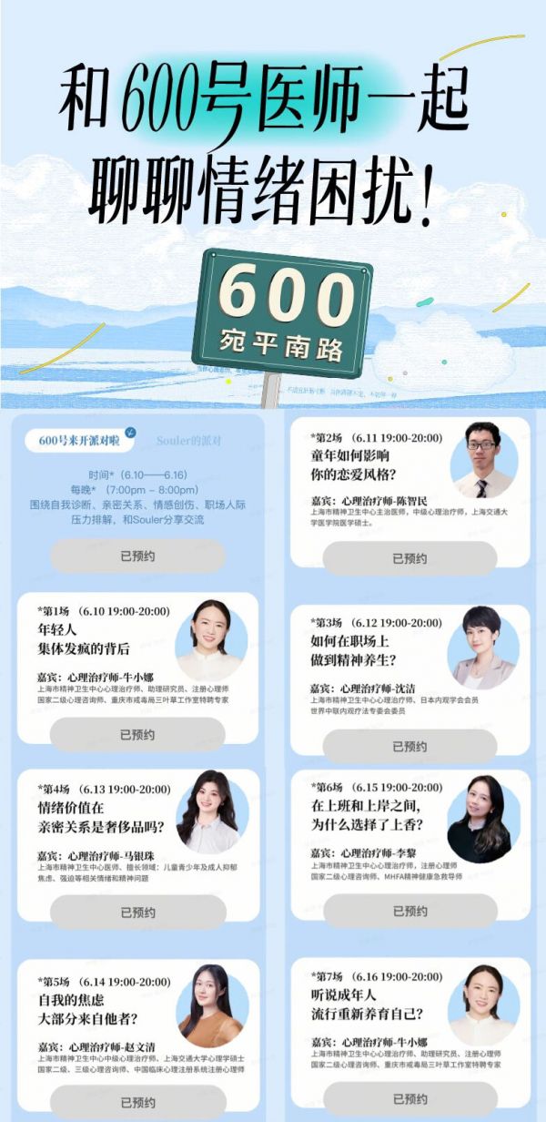 Soul与宛平南路600号联合发起了 7 场情绪疏解群聊派对