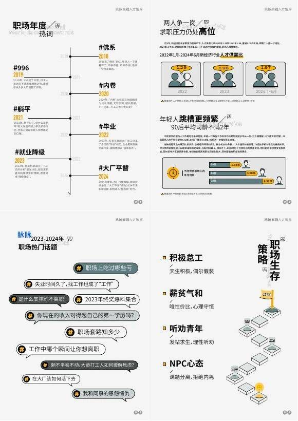 在2024年的职场中,我们可以看到许多新的挑战和变化。从"佛系"到"内卷",再到"大厂平替",这些年度热词不仅反映了职场文化的变迁,也揭示了职场人心态的转变。在这个充满不确定性的时代,职场人如何在压力和机遇中找到自己的生存之道?
