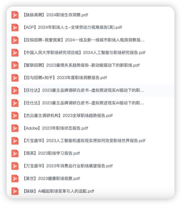 这篇文章的灵感来源于《2024职场生存洞察》报告,该报告深入分析了当前职场的现状和趋势。除了这份报告,还有许多同类型的报告也非常有价值,推荐阅读。这些报告我们都收录在同名星球,可以自行获取。通过阅读这些报告,我们可以更深入地了解职场的现状和趋势,为自己的职业发展提供更多的参考和指导。