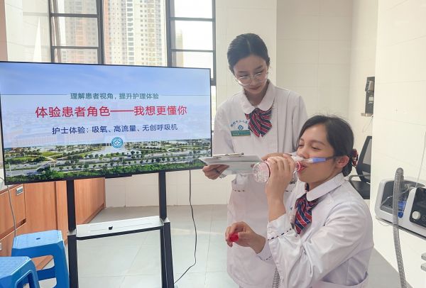 活动在呼吸与危重症医学科一病区拉开序幕,该科室近30名护理人员参与。大家分组体验氧气吸入、高流量氧疗、无创呼吸机等治疗项目,当佩戴上鼻导管、面罩等设备时,真切感受到患者在治疗过程中的不适,如高流量气流对鼻腔的刺激、无创呼吸机面罩的压迫感,以及治疗期间沟通、进食的不便等。