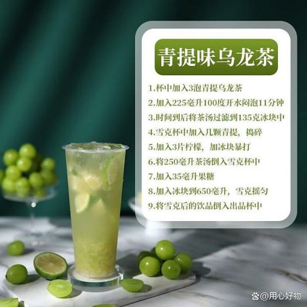 独特的青提风味:将青提的清新与乌龙茶的醇厚巧妙结合,每一口都有着千丝万缕的果香。无论是炎热的夏日还是悠闲的下午时光,这种味道都能带来一丝清凉与活力,瞬间刷新你的感官体验。