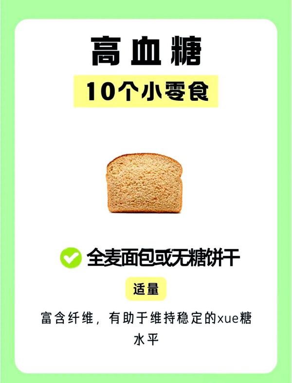 全麦面包或无糖饼干:全麦面粉含量有助于餐后血糖控制。