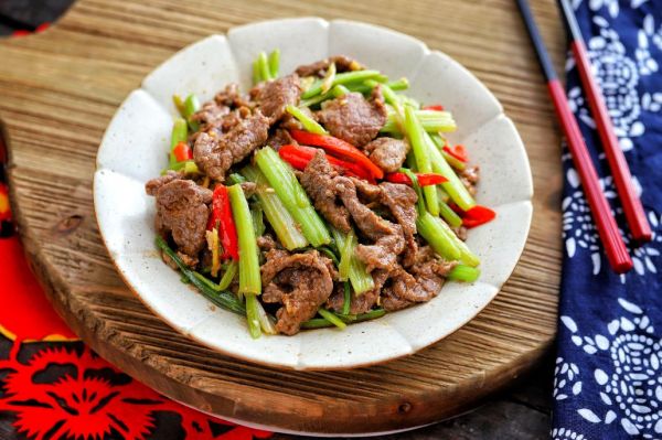 周日:米饭(80g)+ 牛肉炒芹菜(150g)+ 青菜炒蘑菇(250g)