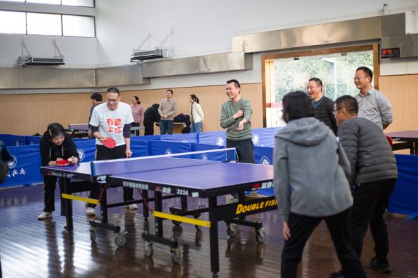 本次运动会设置了乒乓球、羽毛球和掼蛋三大竞技项目,并穿插了掷沙包趣味小游戏,形式多样、趣味横生。乒乓球台前,银球飞舞,扣杀与防守精彩纷呈,直拍横打间尽显专注与技巧;羽毛球场上,高远球划出优美弧线,网前扑救迅捷如电,跳跃挥拍的身影展现出勃勃生机;掼蛋对决区,搭档们凝神思考,默契配合,出牌间既有智慧的较量,也不时爆发出会心爽朗的笑声。