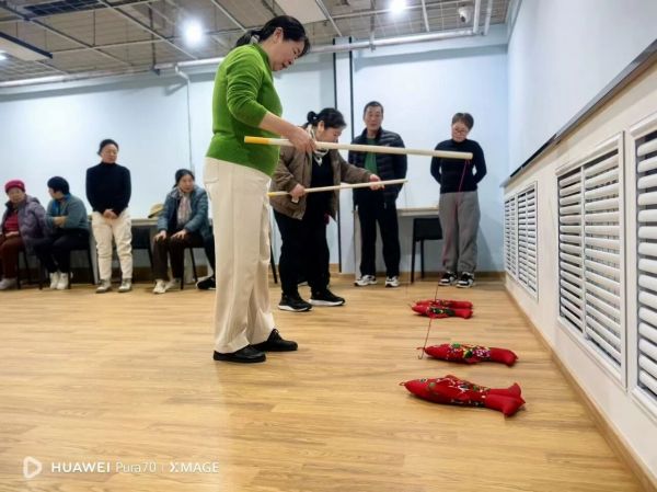 竞技环节亮点纷呈:亲子组的击鼓传花笑声不断,两人三足考验家庭默契,家长与孩子同心协力、活力满满;老年组的跳操、夹弹球项目安全有趣,老人们跟着节奏舒展身体,专注完成挑战,尽显精气神;还有最后的集体拔河项目将氛围推向高潮,居民自由组队、紧握绳索,场外呐喊助威声震耳欲聋,凝聚起社区向心力。