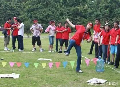 用绳子在一块空地圈出一定范围,撒满各式玩具(如娃娃、球等)做障碍物。学员两人一组,一人指挥,另一人蒙住眼睛,听着同伴的指挥通过“地雷阵”,过程中只要踩到任何东西就要重新开始。指挥者只能在线外,不能进入“地雷阵”中,也不能用手扶伙伴。