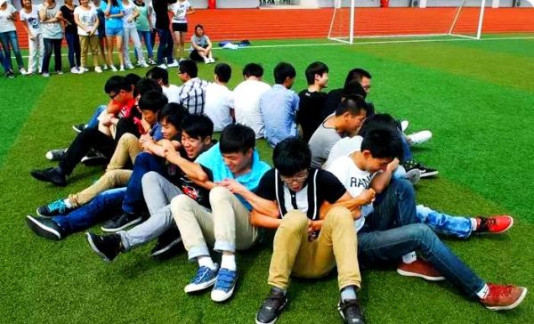 游戏以团队为单位进行,每队需相互配合,在不借助手撑地的情况下站起来。首先,需要四名同学一组,他们背对背坐在地上,然后尝试在不借助手撑地的情况下站起来。成功站起来后,他们会依次增加组员,每次增加两人,直到达到十人一组。在此过程中,工作人员会不断鼓励同学们坚持下去,因为很多时候,成功往往就在“再坚持一下”的瞬间。