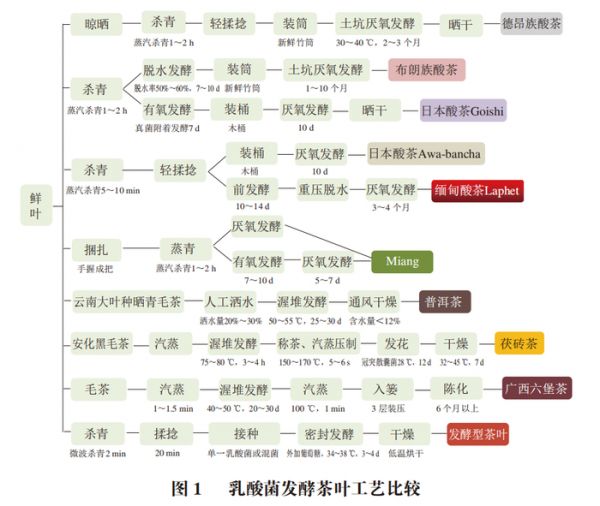 重庆市农业科学院茶叶研究所的陈善敏、王奕、杨娟*等介绍乳酸菌的健康功效,并从乳酸菌发酵茶叶分类和工艺比较、发酵对茶叶品质的影响等方面进行综述,以期为乳酸发酵茶产品的研发、茶资源多元化加工和高值化利用等方面提供参考。