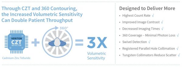 新的VERITON™在设计时考虑了三维人体。它使用12个独立的探测器臂提供360度覆盖。通过用检测器围绕患者,与传统的双头阵列相比,光子检测最大化并且图像质量得到增强。
