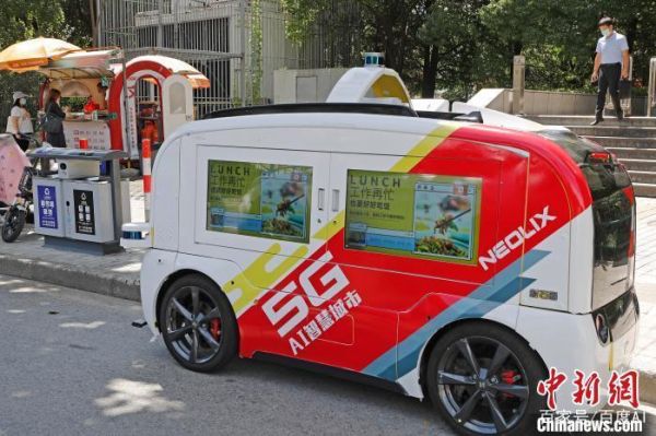7月30日,在上海市地铁二号线金科路站祖冲之路出口处,一辆无人驾驶的零售车,吸引了市民的目光。这辆小车不但可以自主行驶,还能自动卖餐。需要购餐的市民,通过车身的透明“橱窗”看上哪件商品,在上方的购物屏上点选商品,购买支付和取货就可一次完成,全程无需人工干预。