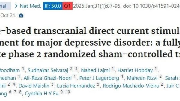Nature Medicine:居家经颅电刺激(tDCS)10 周显著改善重度抑郁,安全性与疗效双认证
