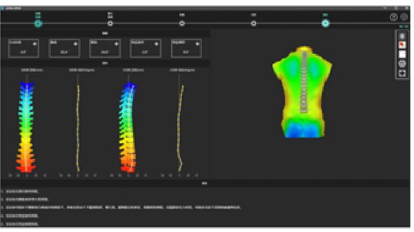 运用人体生物力学、人体工学和AR识别技术,自动识别人体脊柱特征点,建立脊柱的虚拟仿真模型,准确的计算脊柱弯曲程度。