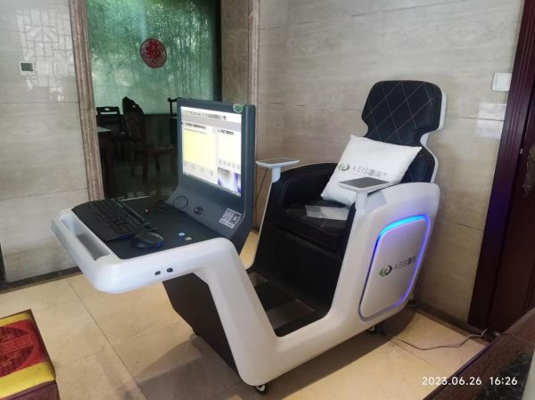 鹰演全身健康扫描系统:薄薄的两片电极片贴在头上,双手双脚放置在仪器的电极板上,5分钟后,360度全身脏器3D成像、人体八大系统200多项指标就全部知晓。鹰演能检测全身各个脏器生物活性和生理功能,预测潜在危险因素和疾病发展方向。像一些慢性病,如高血压、动脉硬化、冠心病、肝病等都可以提前预防。