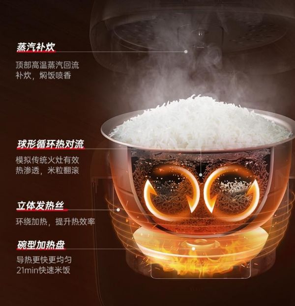 为了确保每一次烹饪的稳定性与均匀性,该产品采用了立体对流加热技术以及3.2mm聚热内胆的完美结合,使米饭蒸煮时360度无死角加热,大幅提升米饭的质量,激发出浓郁的米香,令人垂涎欲滴。