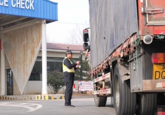 上午,在宿迁西高速口附近查报站,交警部门正在对过往车辆进行安全检查,主要查看司机的驾驶证、车辆行驶证,并询问其是否在发车前对车辆轮胎、刹车片等部位进行问题排查,对于存在的问题提出指导建议,并督促整改。